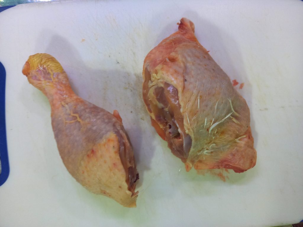 - 2.6 lbs chicken, drumstick, skinless, raw (or thighs)