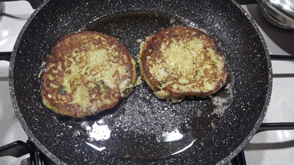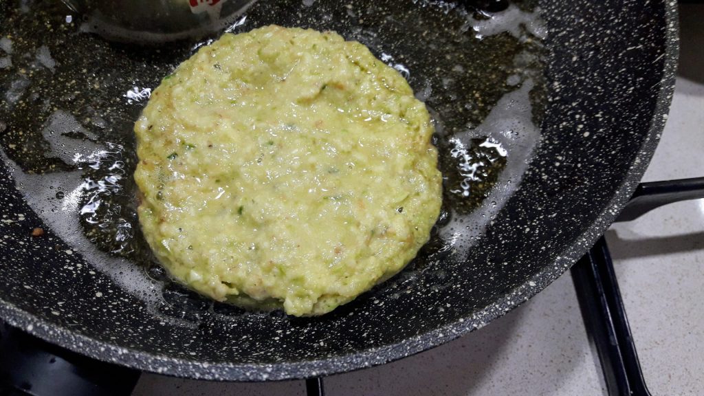 Zucchini burgers in a pan