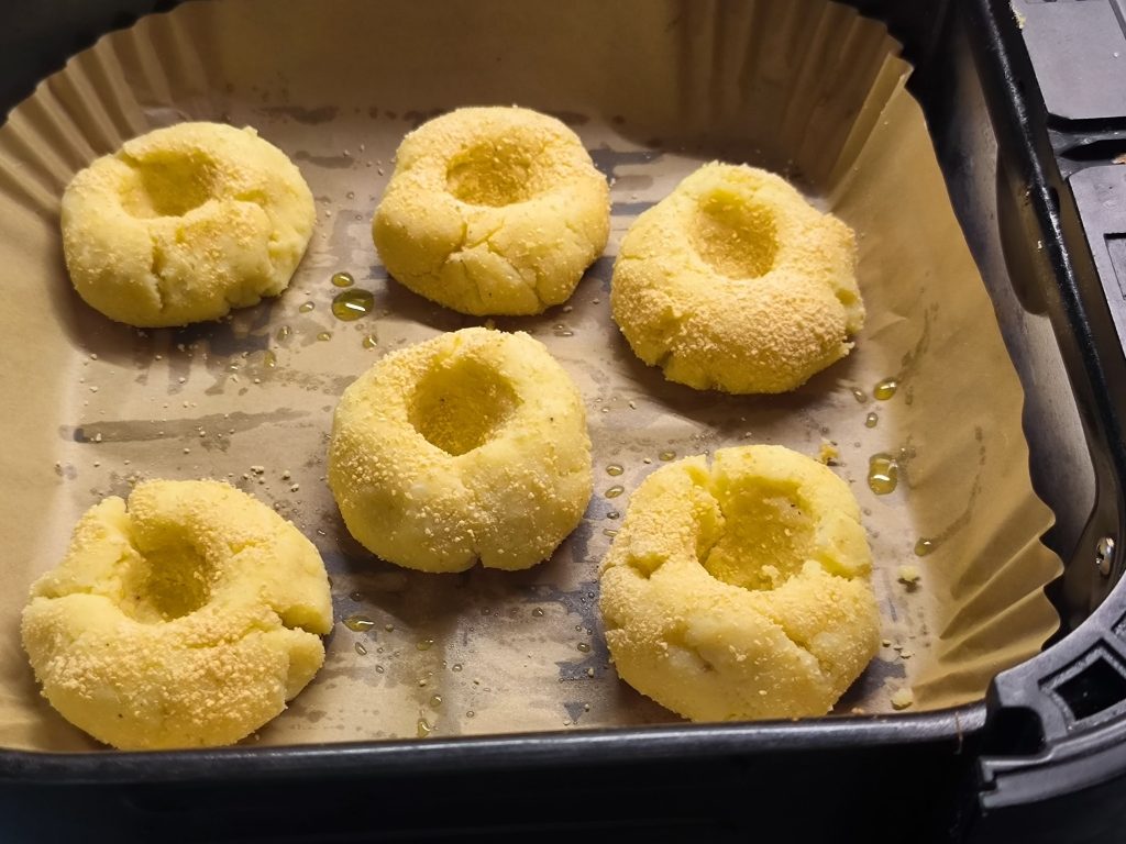 It is a dough made only with potatoes then flavored to taste according to your preferences, and they are not fried even though they seem fried because they are cooked in an air fryer. For the filling, I chose mozzarella, which makes them stringy, and tomato, but you can choose the filling you like best. You just need to knead the potatoes with flour and season them as you like best, then fill them and cook them, and in a few minutes, you will enjoy delights that drive everyone, young and old, crazy.