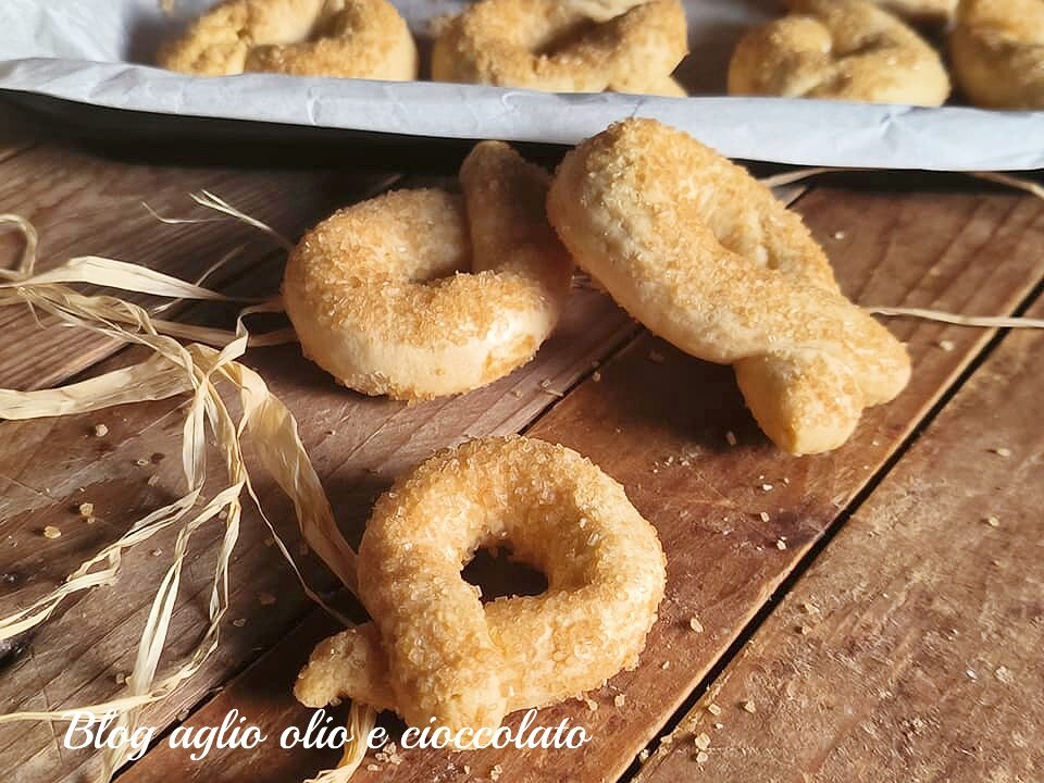 To make the ring cookies, you can follow this recipe. After resting, cut many slices of dough, roll them, and shape into rings. Roll them in brown sugar and place them on a baking tray lined with parchment paper and bake at 350°F for about 20 minutes, but always adjust to your oven. Take them out and let them cool very well before enjoying.