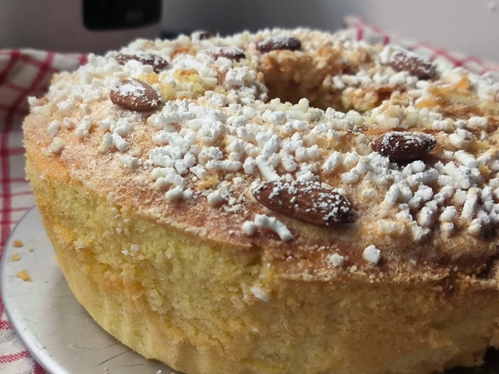 The colomba-style ring cake is a soft and fragrant cake made with cream and vanilla, perfect for Easter. Covered with the classic crunchy almond glaze, it recalls the flavor of the traditional colomba and is ideal for breakfast or as a festive snack.