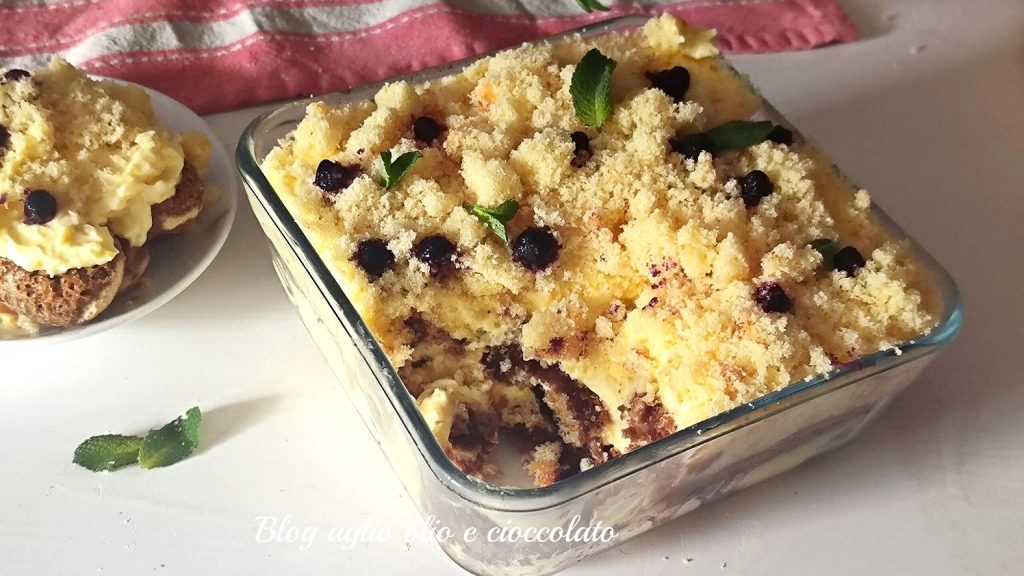 Mimosa tiramisu is a variation of the classic and much-loved tiramisu but inspired by the mimosa cake which is a dessert symbol of Women’s Day. It’s a delicate and delicious dessert and also very beautiful to look at. Mimosa tiramisu is partly prepared like the original recipe because mascarpone is mixed with custard, but the ladyfingers are always soaked in coffee, and it finishes with a sprinkling of sponge cake cubes just like the classic mimosa cake. To make the cubes, I didn’t use sponge cake but some pound cakes I had at home, or you can use a ready-made sponge cake disc or make it yourself. I added some fresh blueberries, but if you don’t like them, you can also leave them out or replace them with strawberries. I guarantee that the result is fantastic, try it, and you’ll feel the delight. Now let’s see how to prepare the mimosa tiramisu recipe.