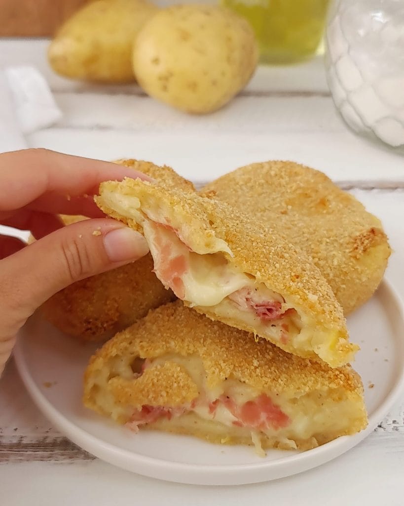 Hello friends, today I present you these fabulous stuffed potato patties with ham and melted mozzarella that can be made and enjoyed on any occasion. They are very easy to prepare and can be cooked in the oven, in a pan, or in an air fryer. Below you will find the recipe.