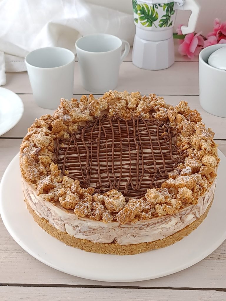• Take the cheesecake and decorate the surface with crushed amaretti and Nutella. Serve. And here is the Amaretto Cheesecake swirled with Nutella ready. I hope you enjoy this latest recipe of mine, until next time friends.