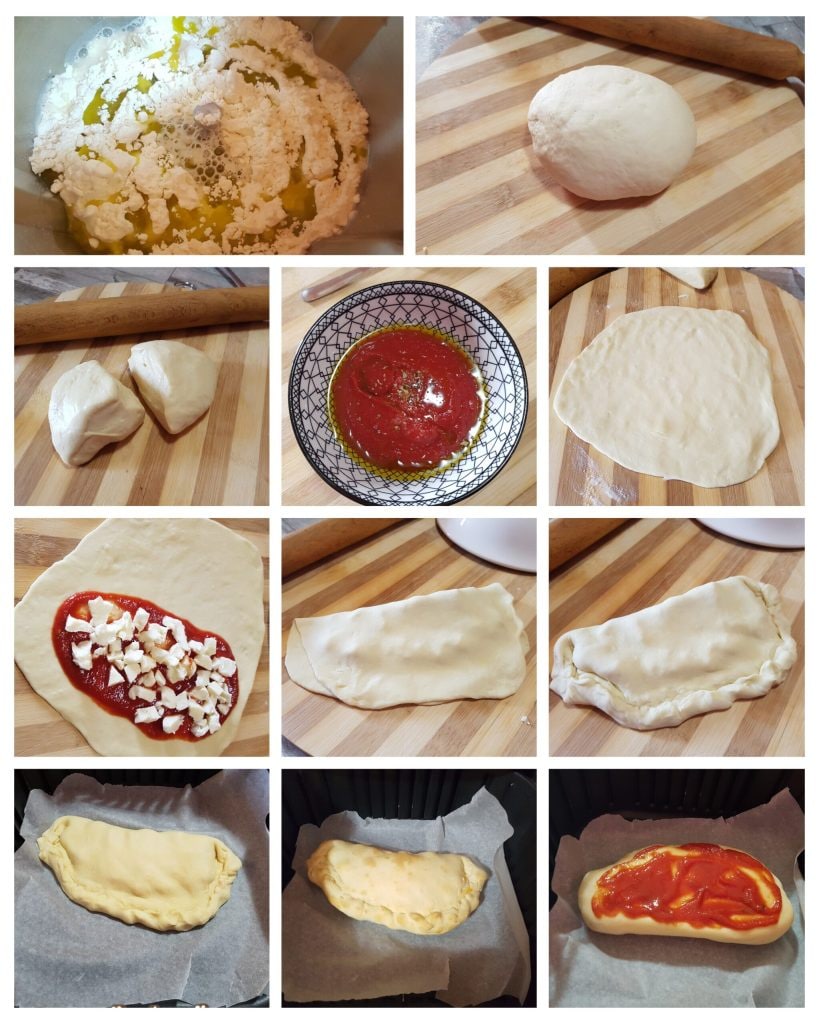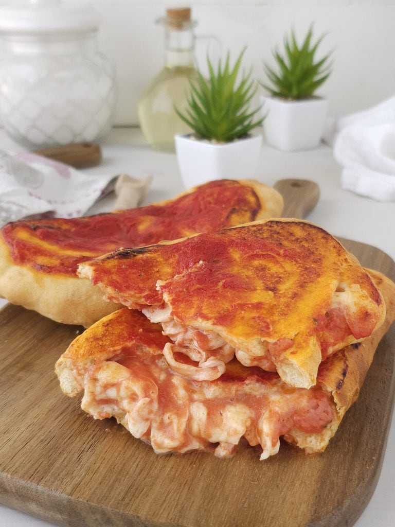 Hello friends, today I present these fabulous baked calzones without rising, perfect for any occasion to impress your guests. It’s a very simple recipe but above all very quick because these delicious calzones or baked turnovers do not require rising. Don’t worry, I assure you they are just as fluffy. Just like the classic way, I filled them with simple tomato sauce and mozzarella, but they can also be filled with cold cuts and cheeses. In this case, I cooked the calzones in an air fryer, but they can also be baked in a traditional oven. Below you will find the recipe..