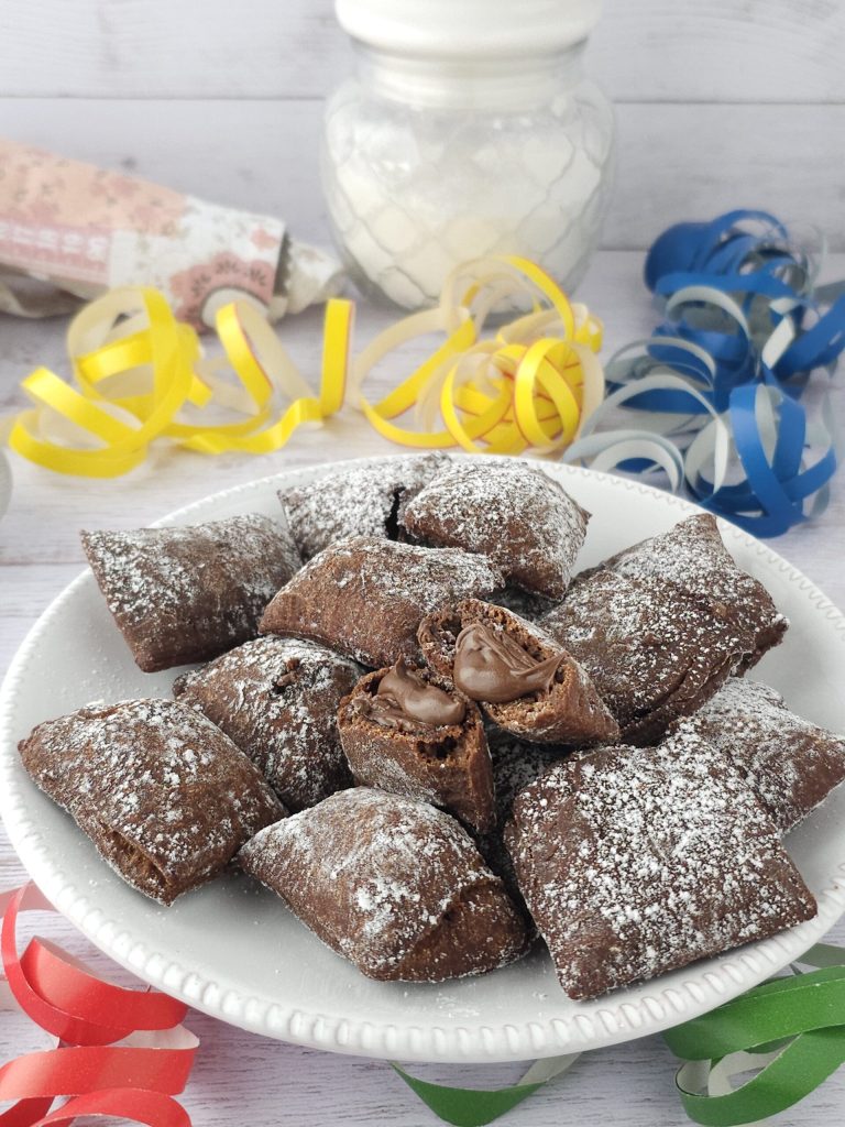 Carnival chocolate ravioli can also be stuffed with custard, pistachio cream, or ricotta. You can decide the size of the ravioli. They keep for up to 2 days.
