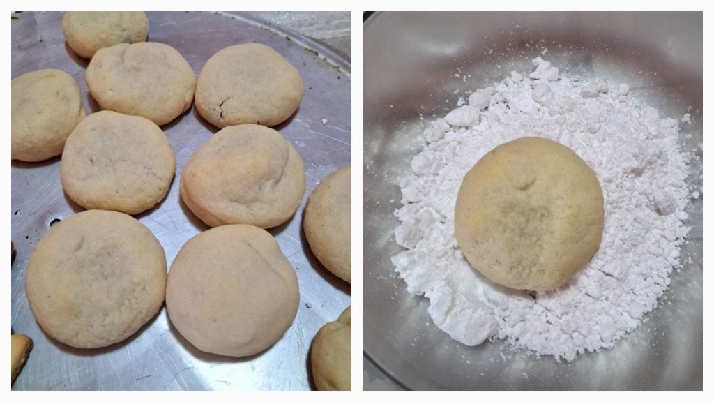 Then bake in a preheated static oven at 356°F for about 10-15 minutes. Turn off, take them out and sprinkle or dust them with vanilla powdered sugar, let them cool, sprinkle again with vanilla powdered sugar, and serve.