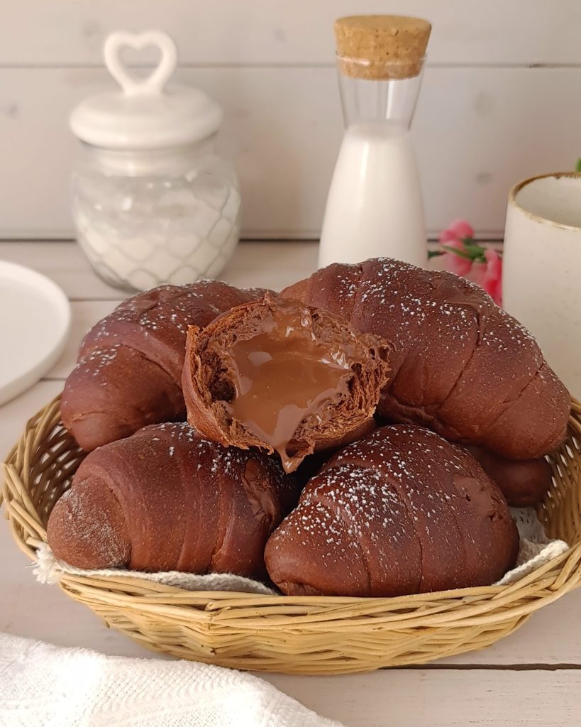 Hello friends, today I present these delicious chocolate brioche croissants filled with Nutella to enjoy for a wonderful breakfast or snack. I assure you they are very simple to make and also quick, because these are the non-layered brioche version with a chocolate flavor that is really much more intriguing. Below you will find the recipe..