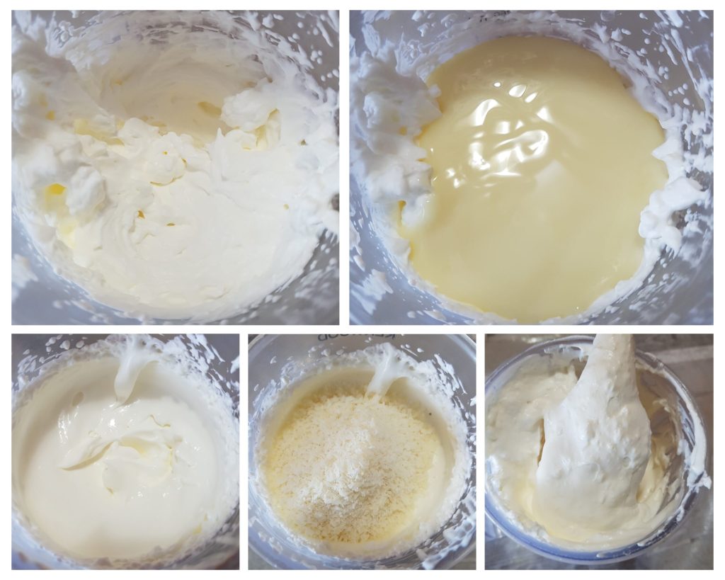 To make this fantastic coconut and Nutella ice cream block, first prepare the quick coconut ice cream. In a bowl, whip the well-chilled heavy cream with electric beaters until stiff, then gradually add the chilled sweetened condensed milk while continuing to whip to obtain a fluffy mixture. Add the grated coconut and mix thoroughly.