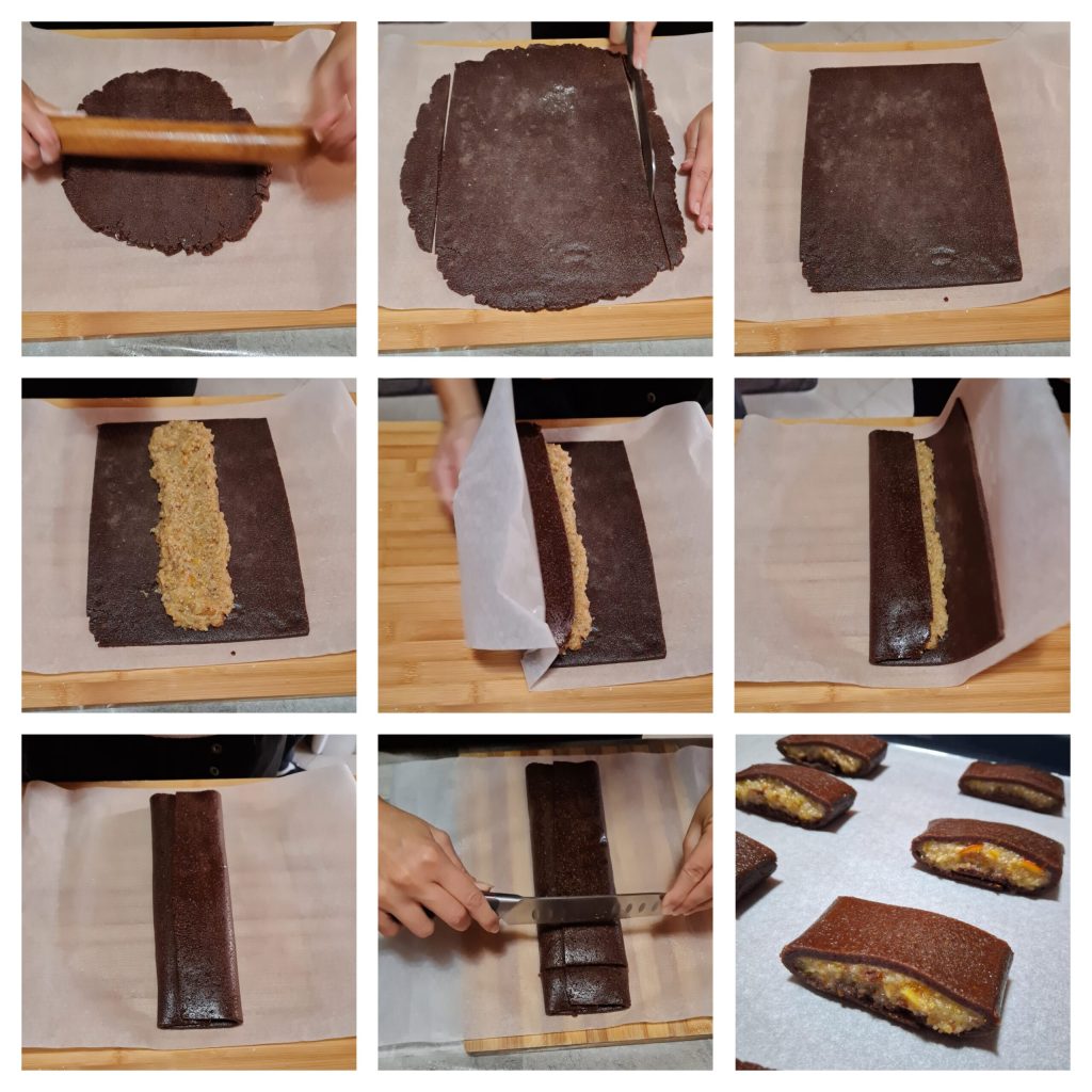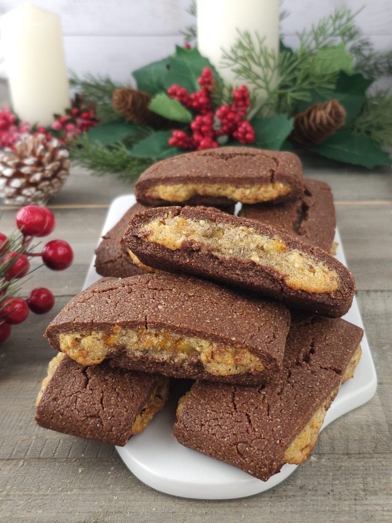 Hello friends, today I’m offering you these fabulous filled Christmas cookies, very delicious and fragrant thanks to the presence of spices. It is a rolled cocoa cookie with the flavor of almonds and orange filled with dried fruit and orange marmalade. Below you will find the recipe..