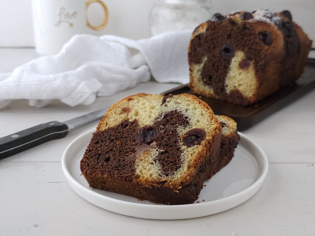Hello friends, today I present to you this delicious marbled plumcake with syrupy cherries to enjoy for a splendid breakfast. Soft and chocolaty, it will drive you crazy. Instead of syrupy cherries, you can opt for fresh cherries during their season. Below you will find the recipe.