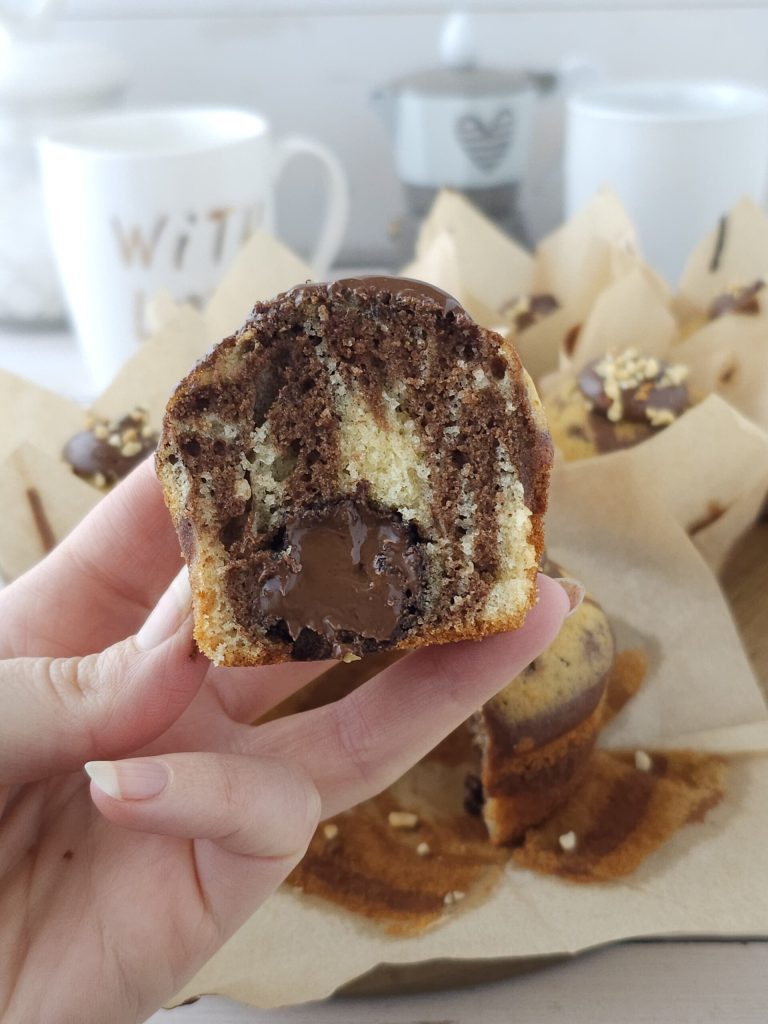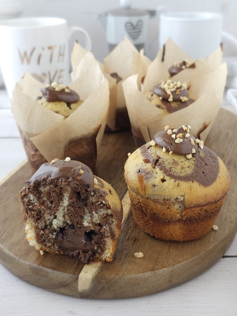 • And here they are, the Nutella swirl muffins. Simply serve them garnished with more Nutella and hazelnut granules.