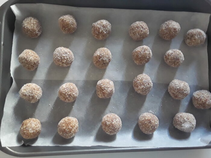 Mix the dough well and shape the amaretti into walnut-sized balls, about 20 g each.