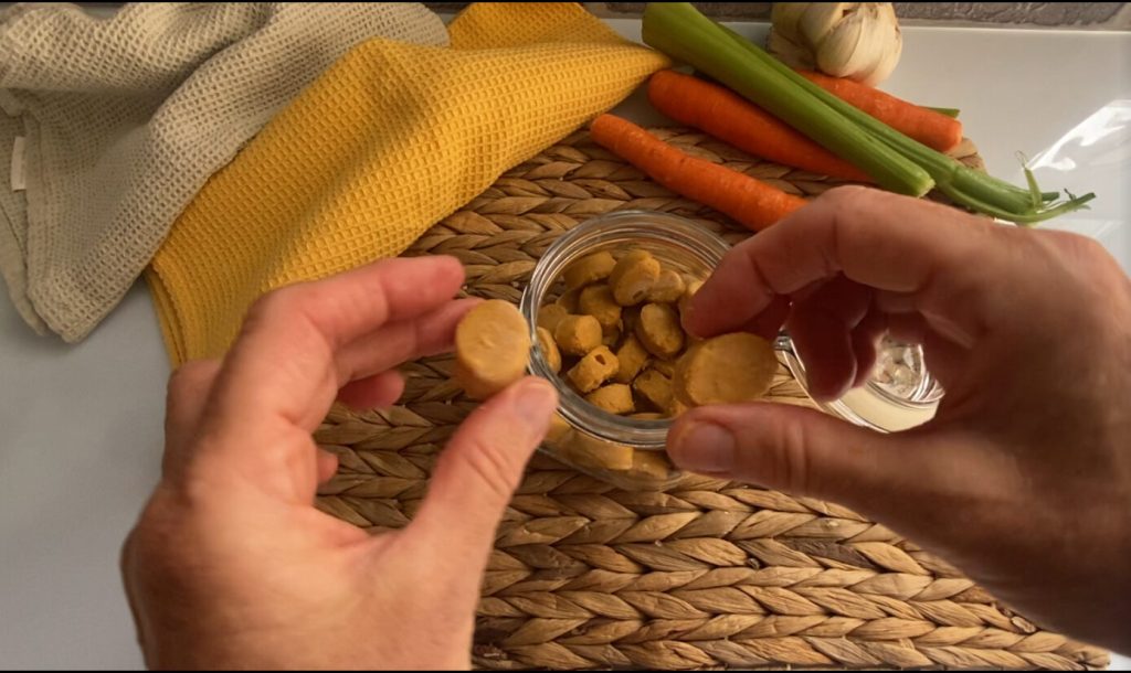After making homemade stock cubes, whether with the Bimby or without, we often have to store them in a practical and functional way. That’s why I’m suggesting a method that will make your life easier: freezing the stock in portions using a silicone chocolate mold.