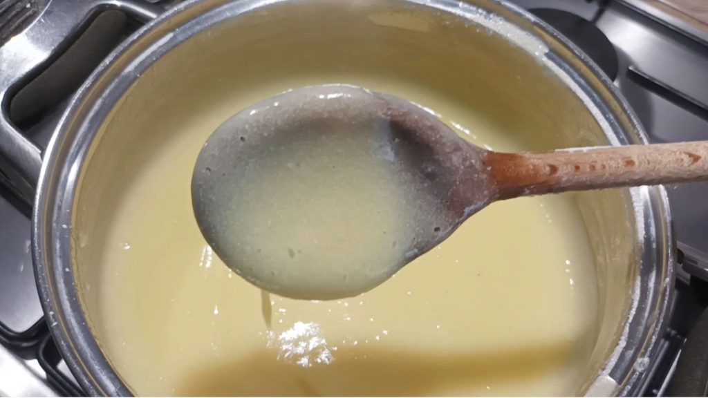 The cream is ready when bubbles form on the surface, or when you take a little with the spoon, and it doesn’t fall easily.