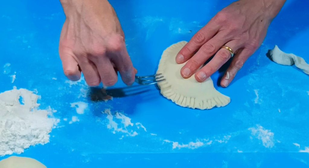 Start by placing a portion of the filling in the center (if you place them individually, start with mozzarella, sauce or pulp, cheese, salt, and pepper), close the panzerotto by bringing one side of the dough over the other.