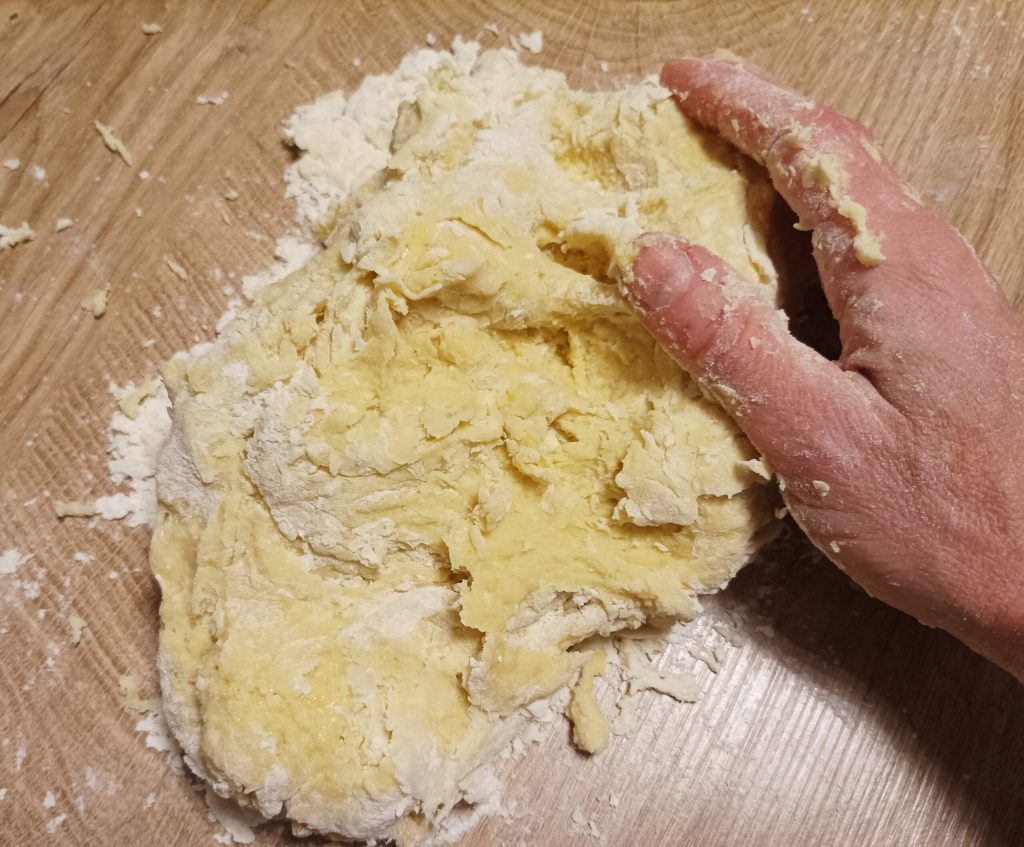 Knead all the ingredients well, then continue working it on a work surface until you obtain a smooth and compact ball.