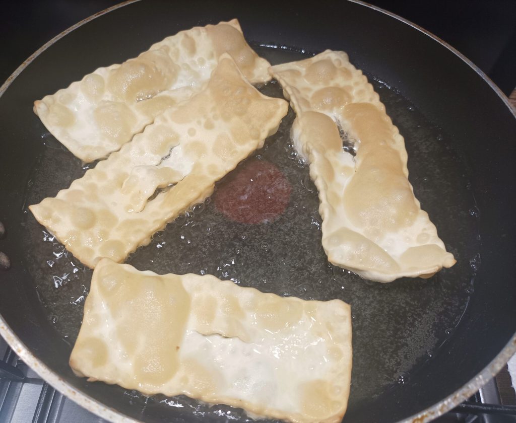 Fill the frying pan with plenty of oil, bringing it to a temperature of 320°F, then immerse the fritters a few at a time. Wait for them to puff up on one side before turning them over.