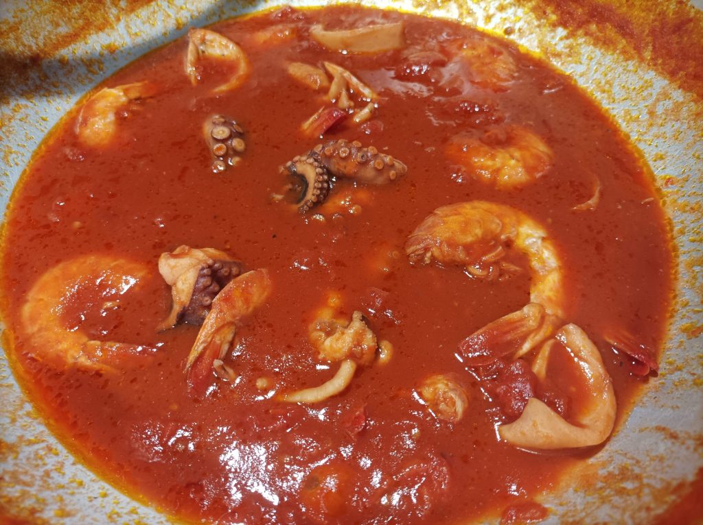 The fish Bolognese with its delicate taste is a lighter and more summery alternative to the classic meat Bolognese, which is decidedly more elaborate and wintry. The preparation of this recipe does not require as much cooking time as meat, but about 1 hour as in my recipe having chosen octopus, cuttlefish, and prawns. However, if you choose swordfish, salmon, mussels, etc., the time would be reduced by another 10/15 minutes. To make this dish even more flavorful and fragrant, I prepared a broth with the prawn heads to extend the sauce and season the spaghetti. I recommend using fresh fish, but alternatively, you can use equally good frozen products. Now I will leave you to the recipe!!
