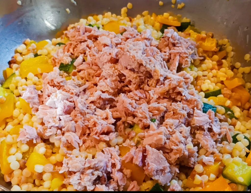 The fregola with vegetables is a quick and tasty dish. It’s a type of pasta that closely resembles couscous but is typical of Sardinia. It is a pasta in the shape of little balls, made with durum wheat semolina and water, which takes this shape due to the rolling of the semolina in terracotta containers. This type of pasta can be complemented with vegetable and legume seasonings, but the most traditional one is with fish and can be served as a hot or cold dish. In this recipe, I propose it in a different way with more ingredients together served as a cold dish for the warmer period, a kind of pasta salad. So, all that’s left to do is try it!!