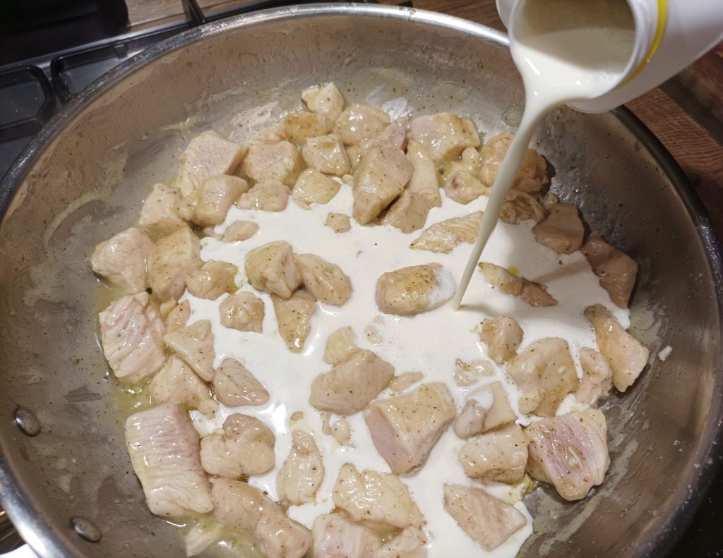When all the pieces are browned, deglaze with the wine by raising the heat to evaporate it. Then pour in the cream and salt, cover and thicken by cooking for about 20/25 minutes, it should be creamy, but not liquid.