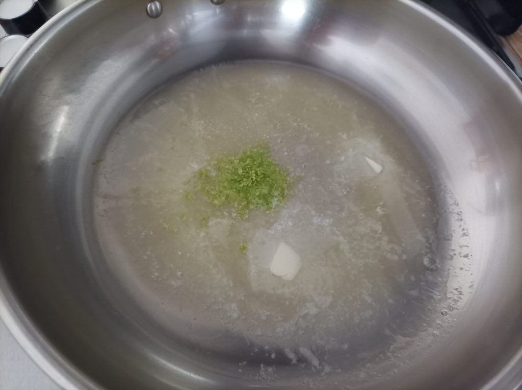 In the pan, put the butter and let it melt, add the zest and juice of the lemon and the salt, after a minute add the cream, heat for 1 minute and turn off.