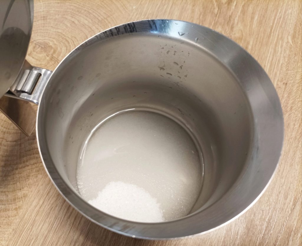 Put the remaining sugar in a saucepan with the water and bring to a moderate heat.
