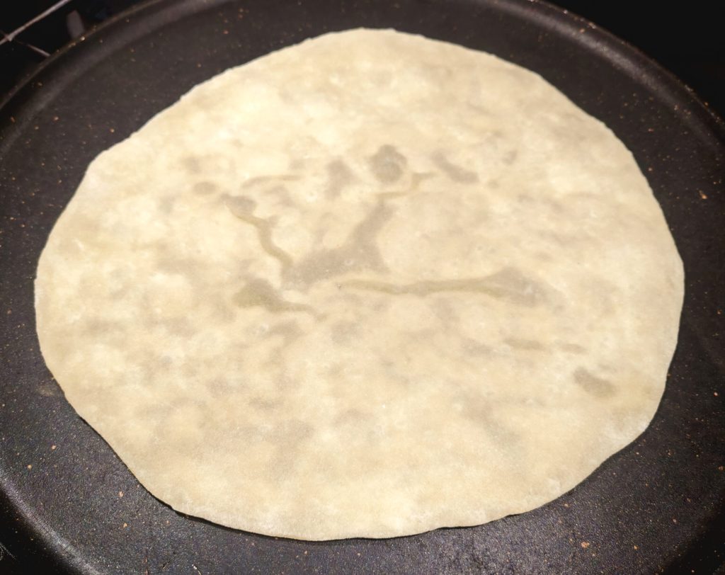 Heat the griddle well and place the tortilla, cook for 1 minute over moderate heat.