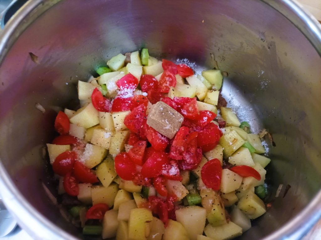 Pasta and potatoes is a dish that combines goodness and simplicity at the same time. It’s a typical Neapolitan dish, but it’s prepared in various areas of Italy. Variations can include the addition of provola cheese, served as a soup, or baked. Pasta and potatoes originated as a humble dish, requiring few ingredients, often using mixed pasta, leftovers of different shapes. I propose a very simple recipe made only with potatoes, tomatoes, celery, and onion, plus I’ve added some guanciale, which you can replace with pancetta or omit completely. So all that’s left is to try and taste it.