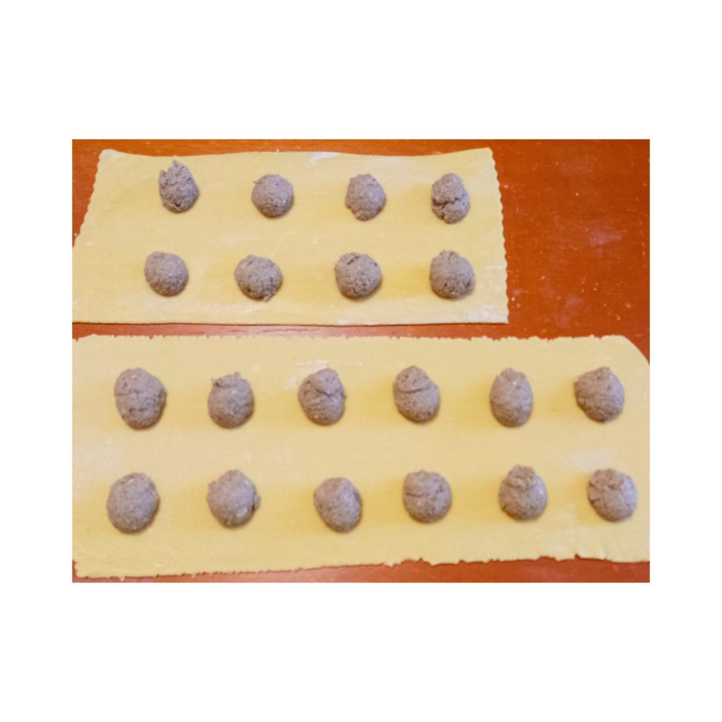 The ravioli filled with meat, porcini mushrooms, and stracchino cheese are ready to be served!