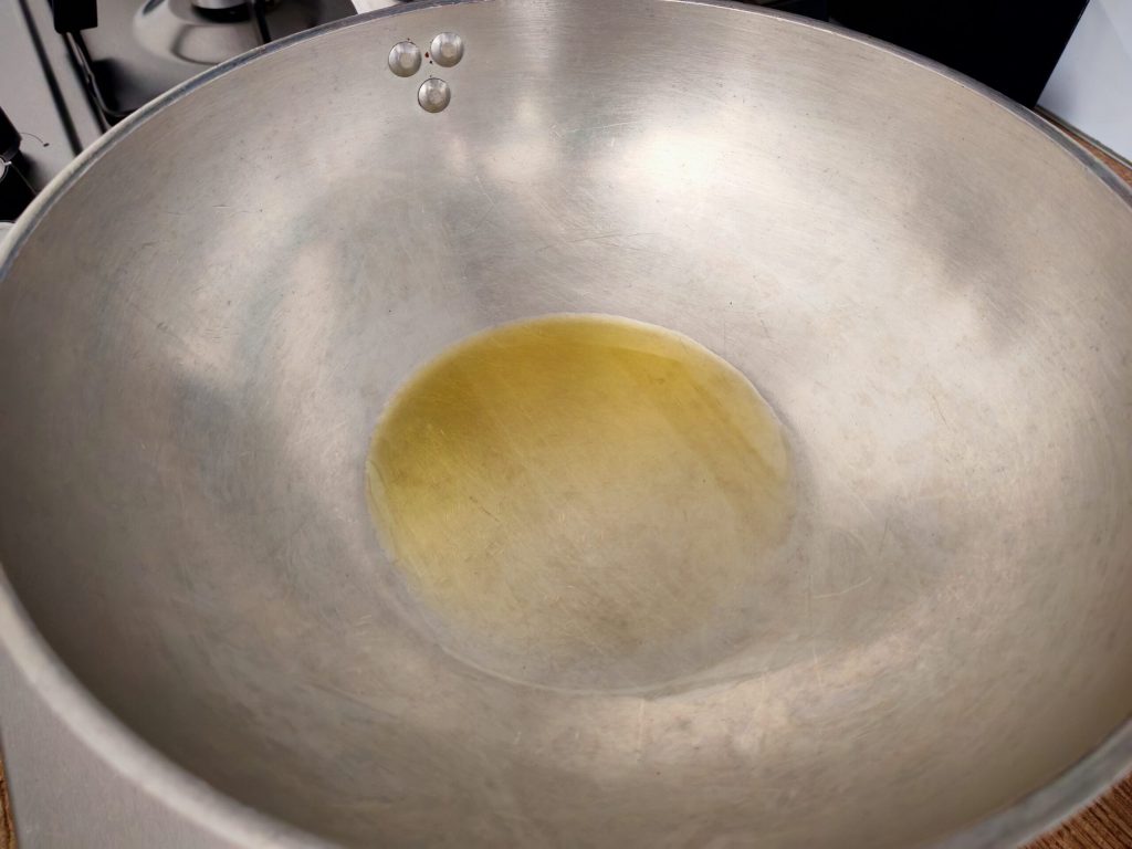 • Put a little oil in the wok and heat it over medium heat.