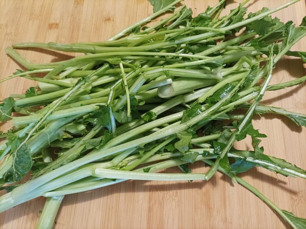 After washing, transfer them to a container with holes (a colander) and let them drain just while you prepare the seasoning in the pan.