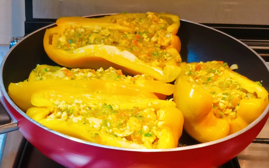 The stuffed peppers with vegetables and chicken breast are ready!!