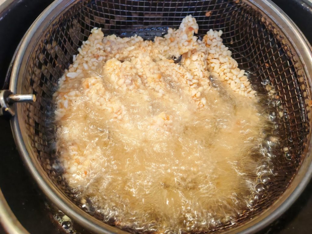 Meanwhile, turn on the fryer to 340°F. When the oil has reached the temperature, place a few pieces at a time in the basket.