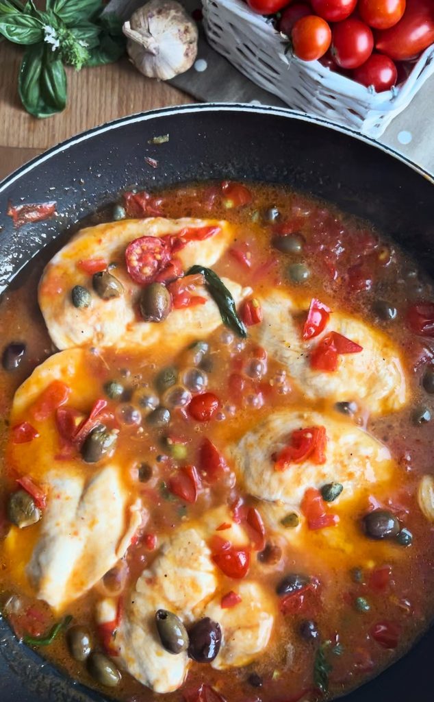 Sicilian Style Chicken Breast in Pan, is a tasty and quick dish that encapsulates the intense and authentic flavors of Sicilian culinary tradition. This recipe enhances the chicken making it tender and juicy with the addition of typical ingredients like olives, capers, cherry tomatoes, and basil, creating a perfect balance between sweetness and savoriness. Easy and quick to prepare, it’s an ideal choice for a lunch or dinner that brings the sun and scents of the Mediterranean to the table. Perfect to enjoy with good crusty bread, mopping up the sauce is a must.
