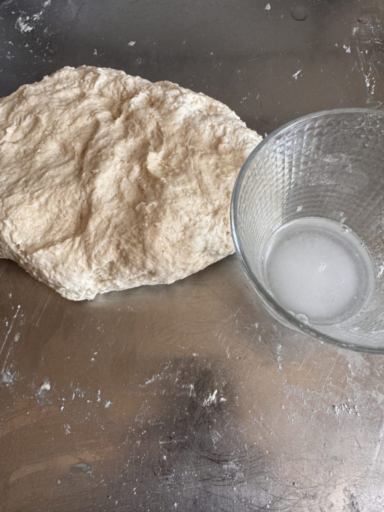 Dissolve the salt in the remaining water and incorporate it into the dough. Work the dough again very well, energetically.