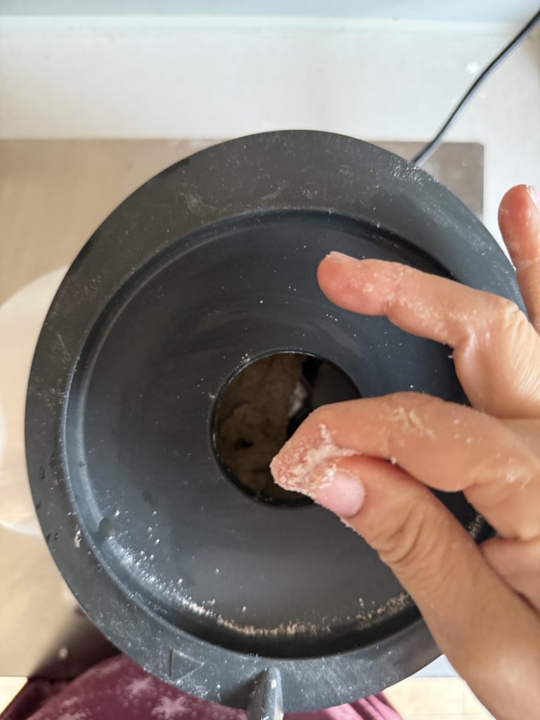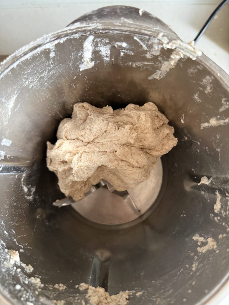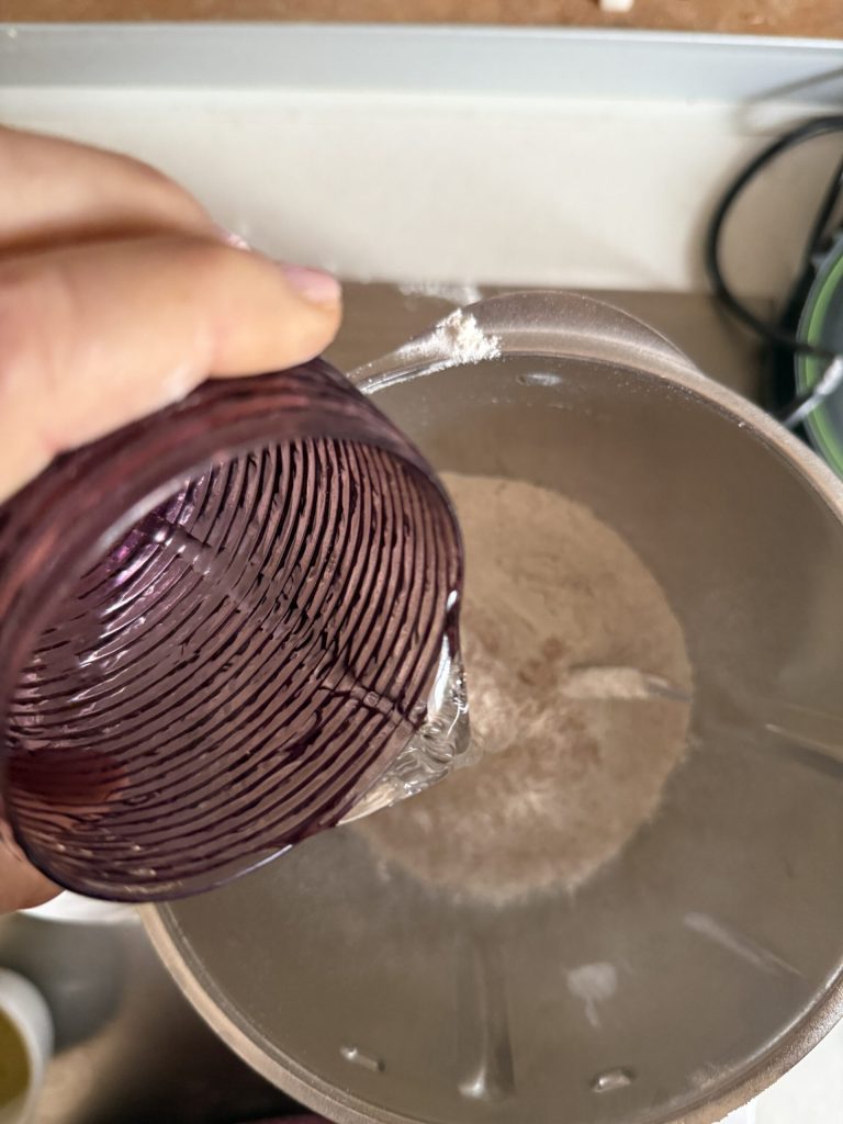 • Add half of the water and start the Bimby in kneading mode.