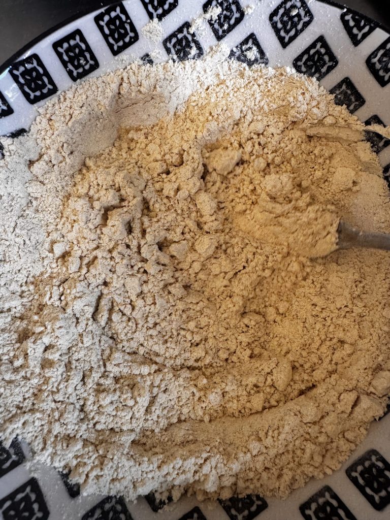 In a bowl, pour the chickpea flour and mix it a little to aerate it.