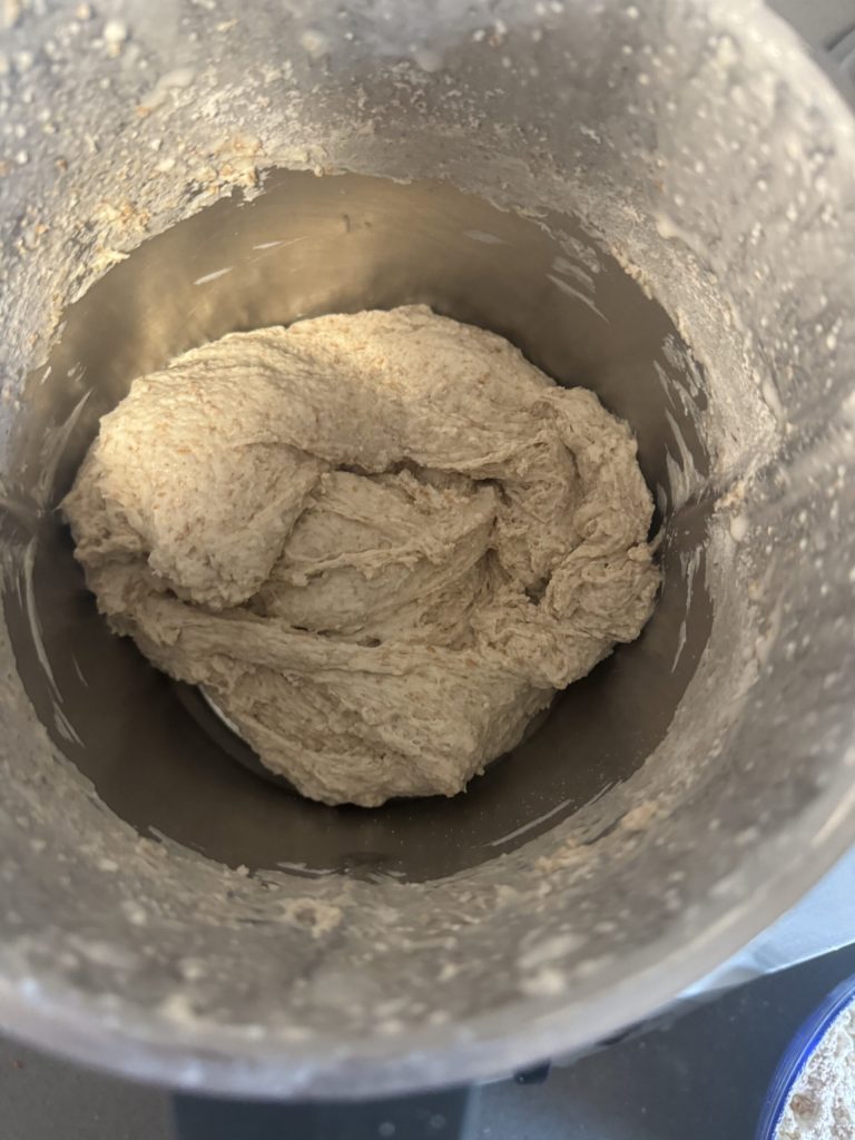 I then transferred to the work surface to give some light folds that are impossible to achieve in the Bimby. Obviously, in a stand mixer, this step is completely optional.