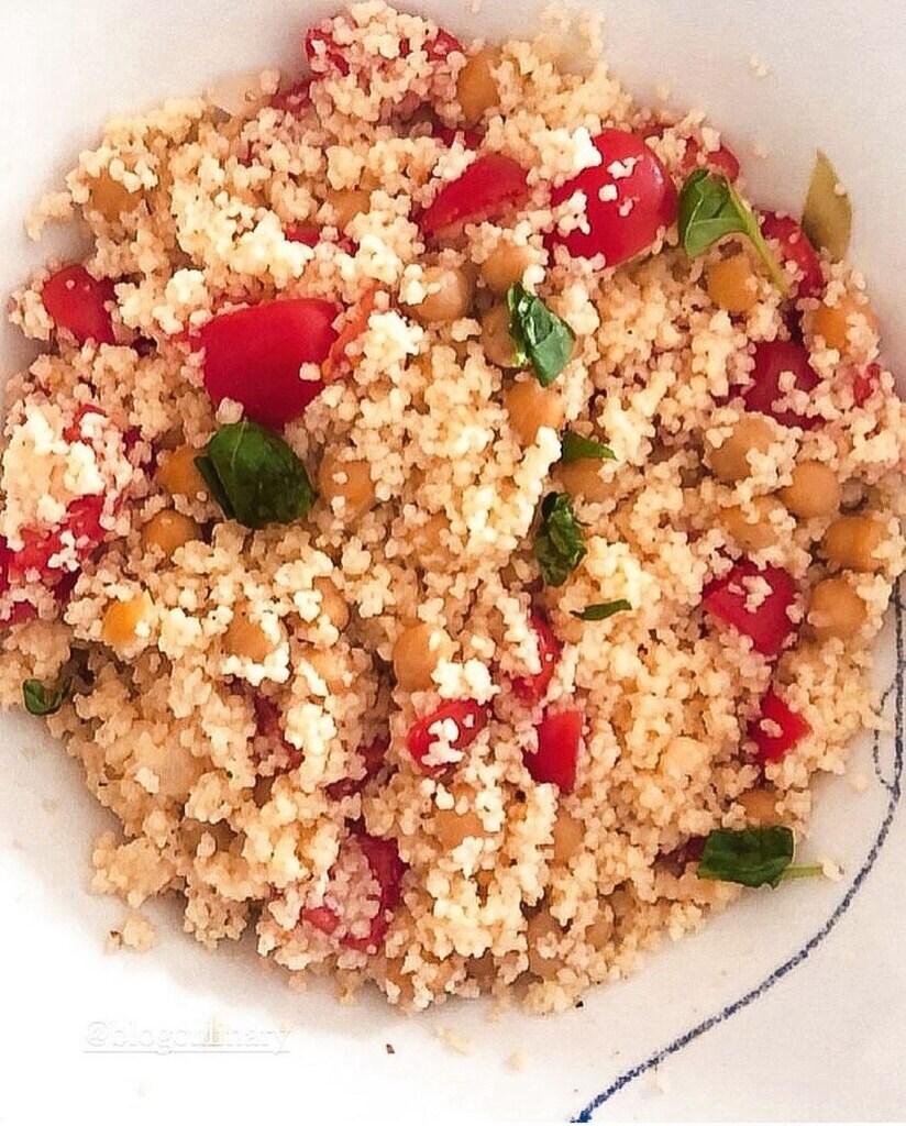 Add turmeric, canned chickpeas, and cherry tomatoes. Season with salt, olive oil, and basil if you prefer.While cooking the Basmati rice, slice the chicken breast into strips and cook it in a pan with a bit of oil, or grill it. Assemble the salad by putting the rice, chicken, knife-chopped arugula, salt, and oil.