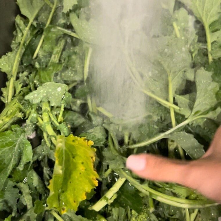 Here, the kitchen is waste-free, and above all, sustainable. The stems of broccoli rabe (or even turnip greens) are absolutely edible, tasty, and – believe it or not – well-paid, as they are counted in the total weight of the vegetables.