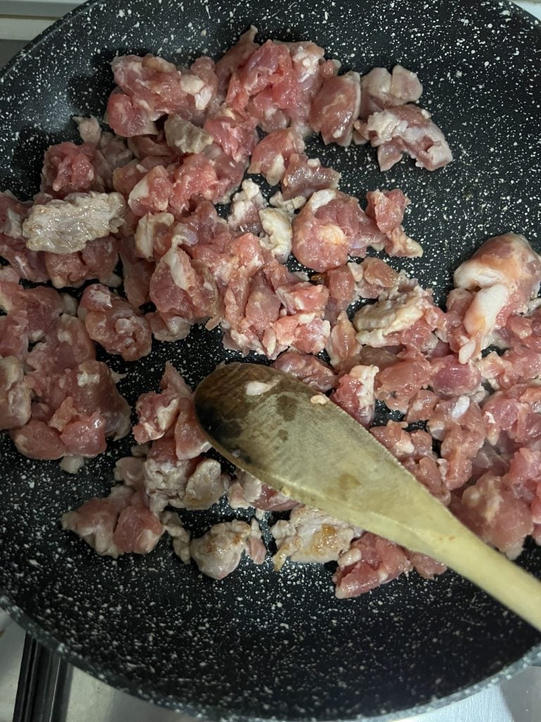 • Now we can add the crumbled sausage and cook everything for another 5 minutes.
