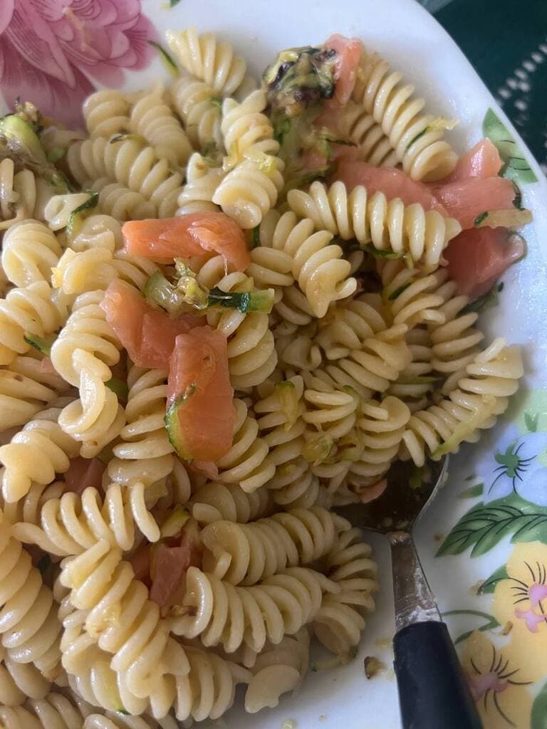 The contrast between the sweetness of the zucchini and the strong taste of smoked salmon makes this dish truly delicious, and if you wish, you can enrich it with a touch of light cream or a tablespoon of spreadable cheese for more creaminess. The pasta shape can also vary: I prefer fusilli, but choose what you prefer or have in your pantry.