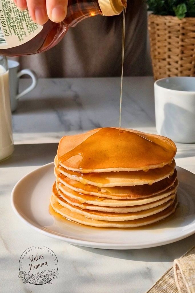 I often make fluffy pancakes without butter on weekends when I can finally enjoy a slow breakfast. They are perfect to share with friends and family: Lorenzo loves them with chocolate, but that’s another story, while I prefer them with fresh fruit and a drizzle of maple syrup.
