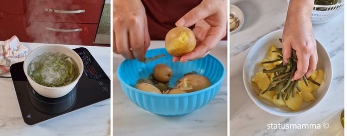 1. Trim and wash the green beans, then boil them in salted water for about 10-12 minutes: they should remain bright green and tender.