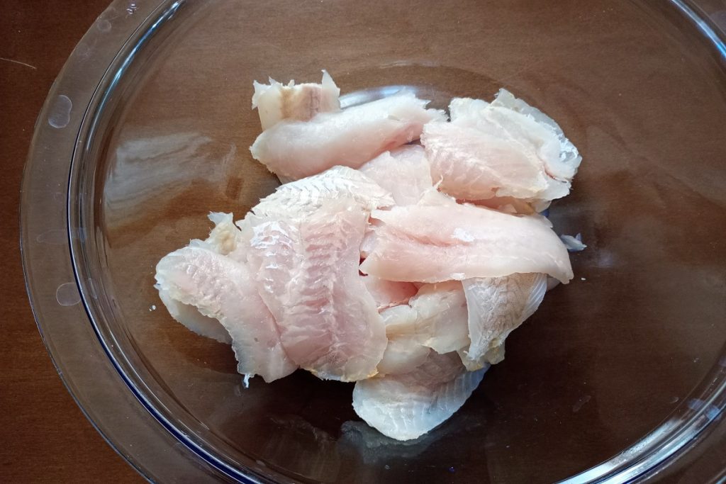 If you’re using frozen cod fillets like me, let them thaw, rinse under running water, and dry them.
