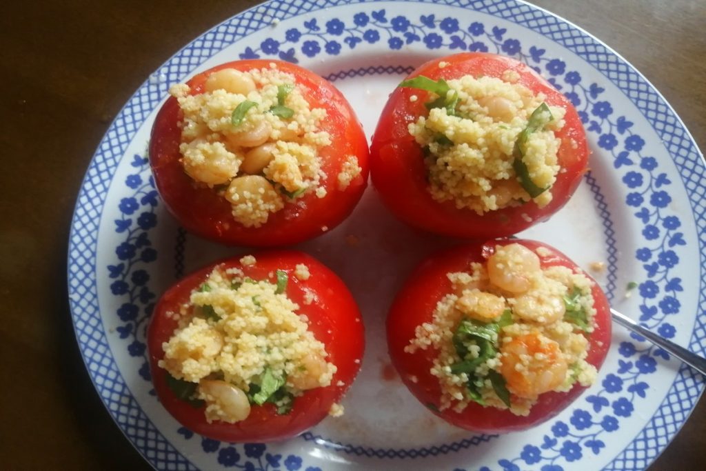The air fryer cous cous stuffed tomatoes, a versatile and innovative recipe to enjoy tomatoes in a different way.