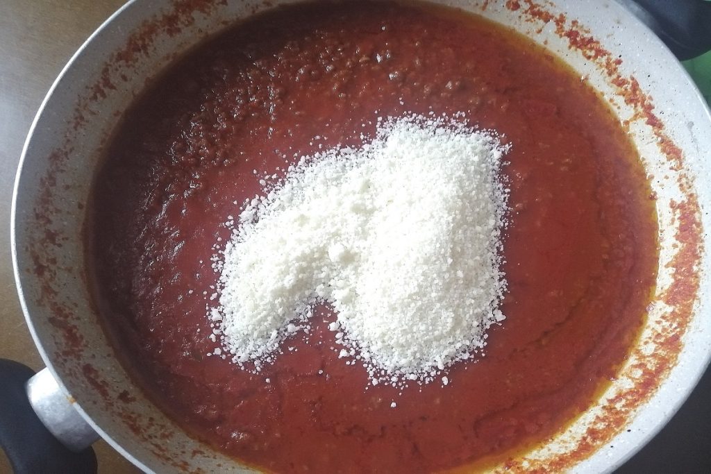 • In a pot, pour the milk, butter, grated Grana, and the teaspoon of granular broth.