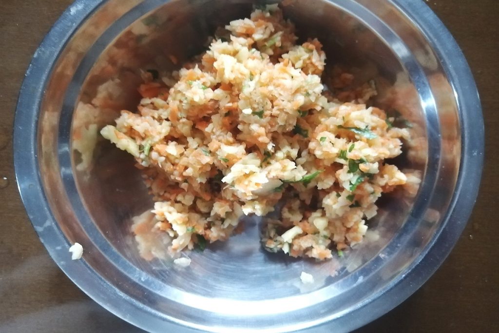 After chopping them, transfer the vegetables to a blender to finely chop them.