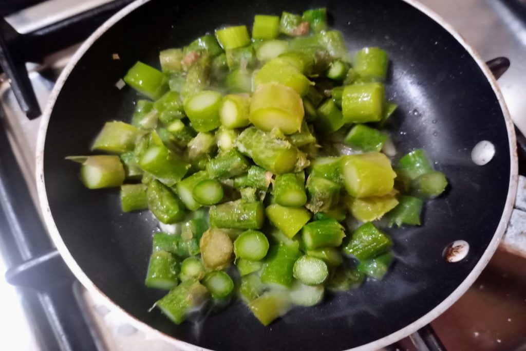 Barley with asparagus and scrambled eggs, a perfect and balanced trio in its content for those who want to follow a healthy diet: carbohydrates, proteins, and vegetables.